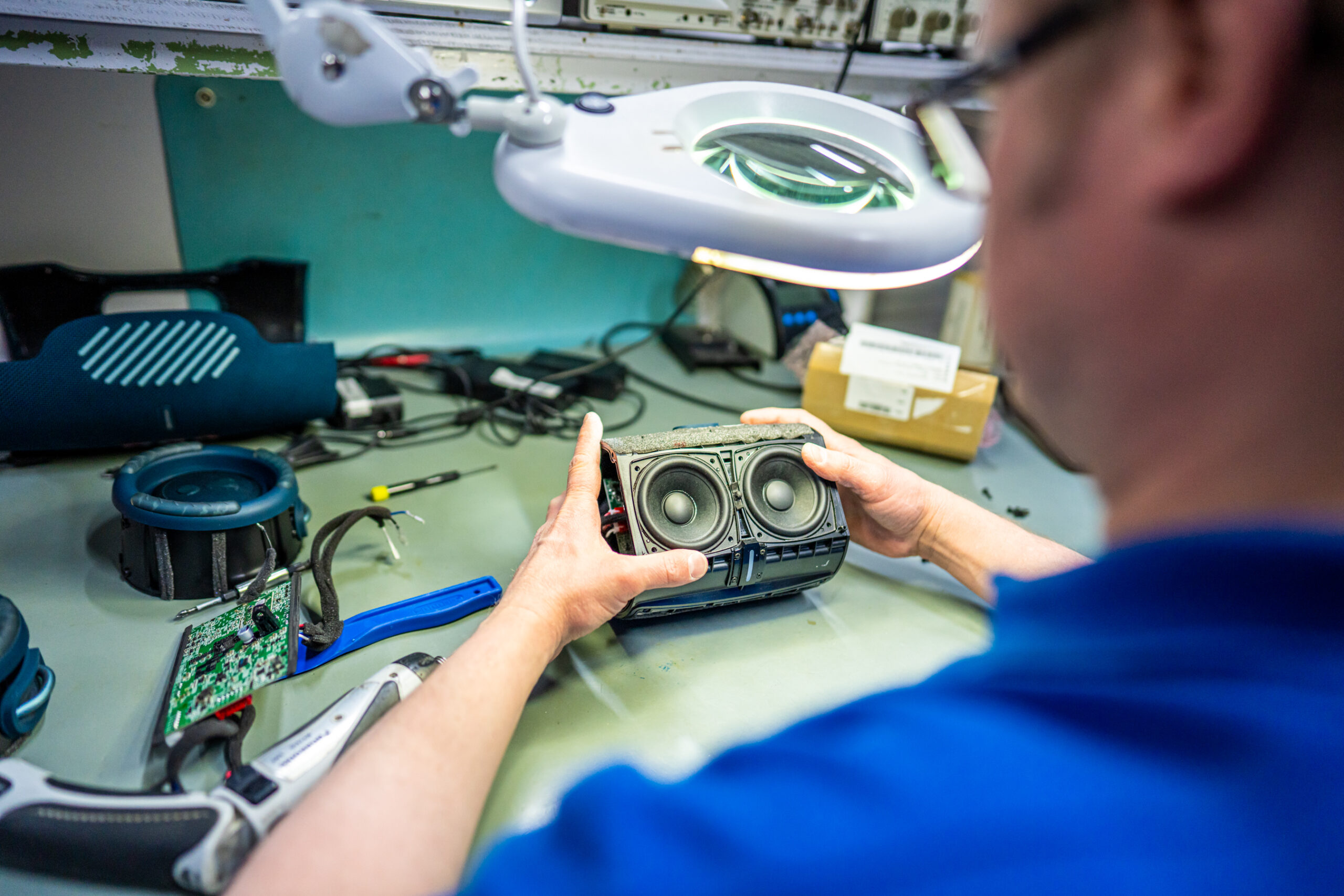 De kleinere en meer handzame toestellen worden in onze gespecialiseerde en centrale werkplaatsen in Mijdrecht (NL) en Tervuren (BE) gerepareerd. Bij ontvangst noteren we alle gegevens in ons systeem, zodat de reparatie kan worden gevolgd via onze website. Zodra de reparatie is voltooid, versturen wij het via een vervoerder terug naar de dealer of rechtstreeks naar de klant thuis.